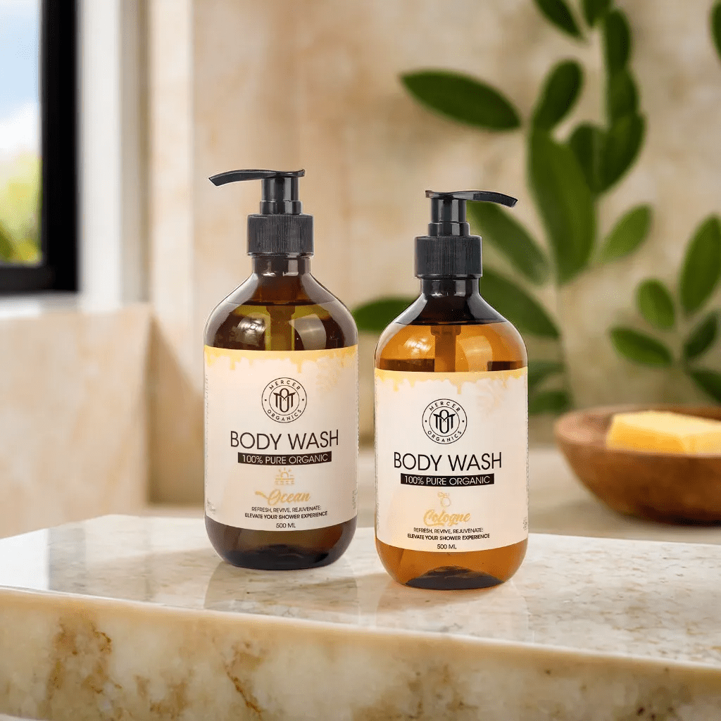 Mercers' body washes are formulated to effectively cleanse the skin while also providing nourishment and hydration. They contain natural oils and botanical extracts that not only cleanse but also moisturize and soothe the skin. Our body washes is enriched with vitamins and antioxidants, which can help maintain healthy skin and combat environmental stressors.